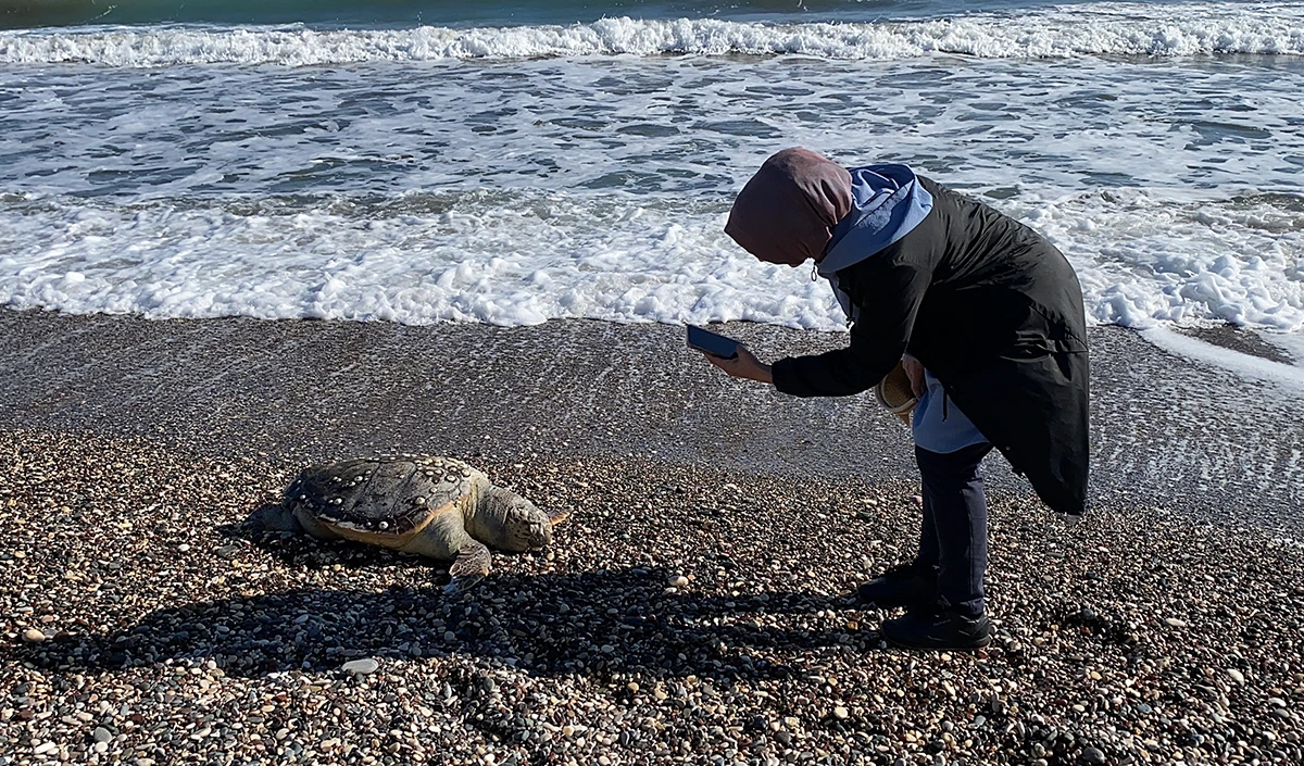 Kaplumbağayı sahilde gören Ahmet Şahin, "Sahilde gezerken deniz kenarına indiğimde kaplumbağanın dalgalarla kıyıya vurduğunu gördüm. Ölmüş vaziyetteydi, yetkililere haber verdik. Gelip alacaklar" dedi.