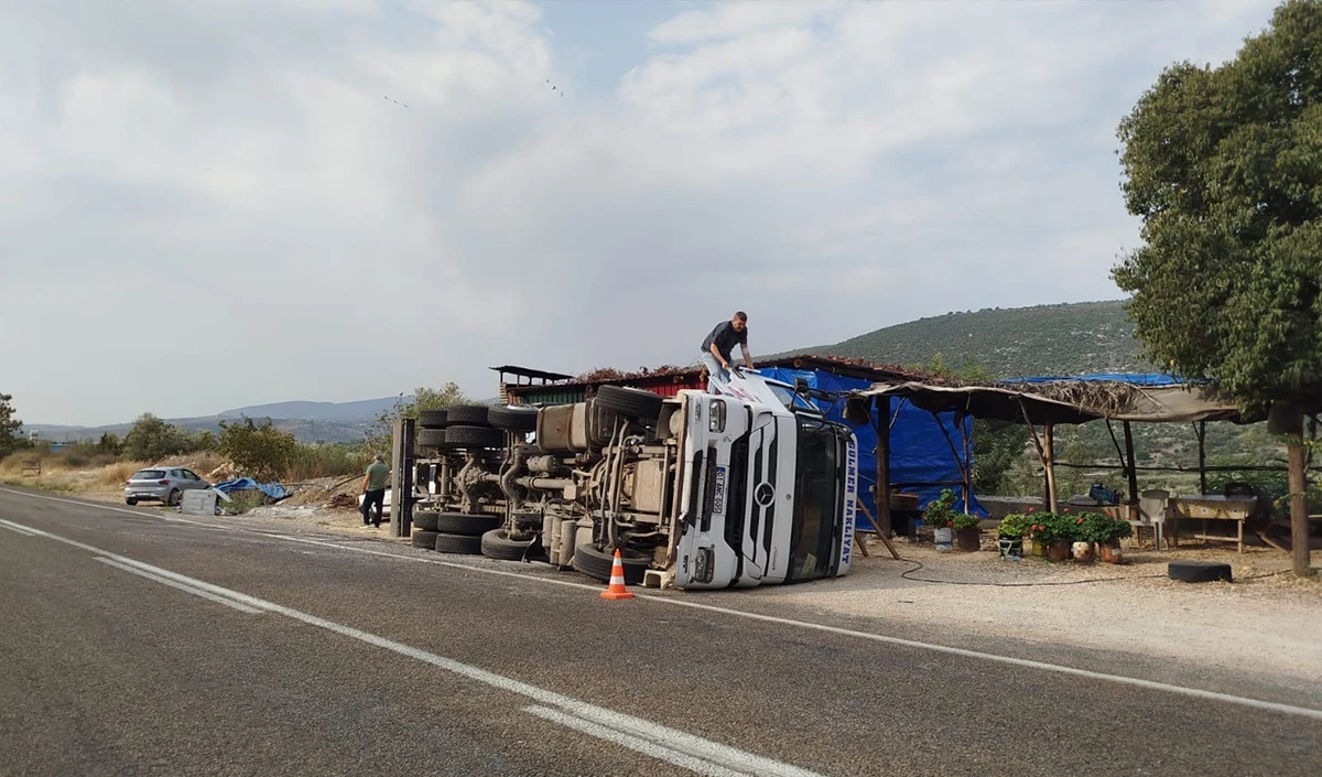 Kamyon devrildi, sürücü yara almadan kurtuldu
