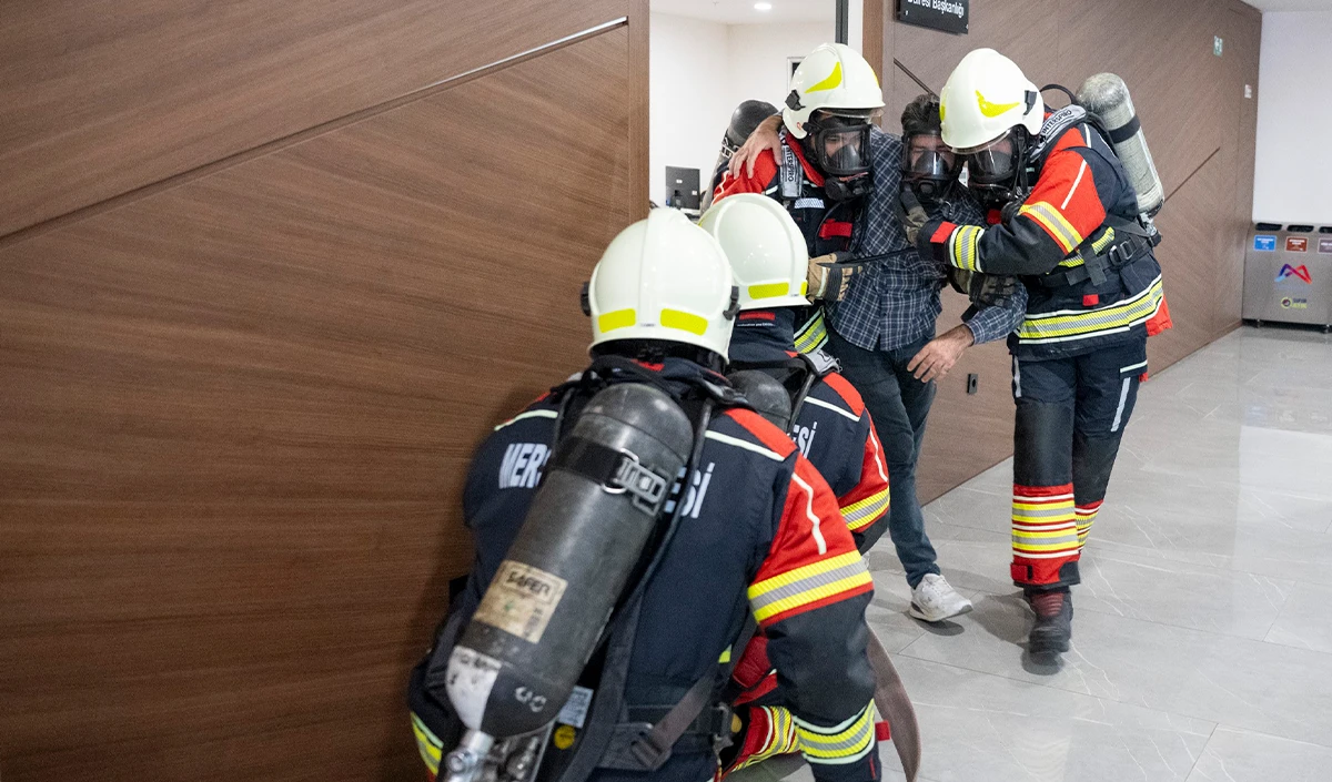 Birimlerin kendi aralarında personel yoklamalarını yaptığını ve yoklamalarda bir kişinin senaryo gereği alt katta mahsur kaldığı ve zehirli gazlardan etkilendiğinin gözlemlendiğini aktaran Çavdar, "‘Binaların yangından korunması' yönetmeliği gereği binada bulunan kurtarma ve ilk yardım ekibindeki arkadaşlar yangına ve dumana maruz kalan yaralı personelin koordinatlarını itfaiye ekiplerine bildirdi. İtfaiye ekipleri, solunum setleri ve tam teçhizatlı olarak içeriye girdiler. Zehirli gaza maruz kalan kişiye maske takarak, dışarıya tahliyesini gerçekleştirdiler" diye konuştu.