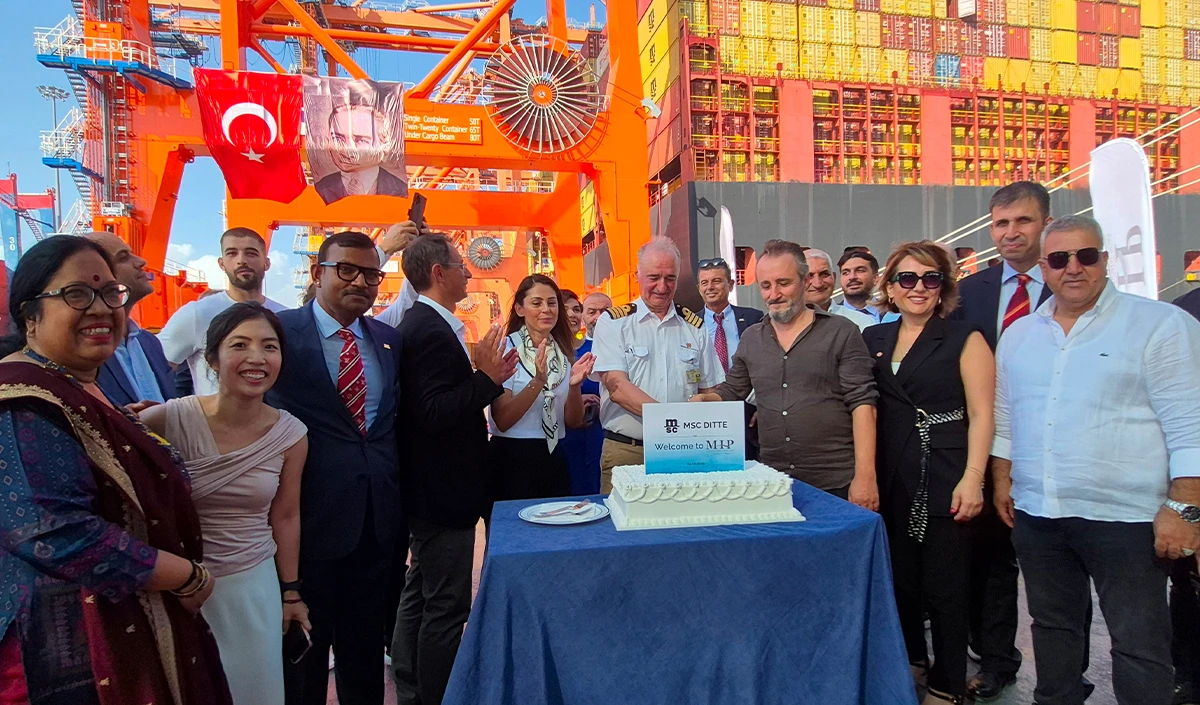 19 bin 313 TEU kapasiteli geminin gelişi, MIP’nin uluslararası deniz lojistiğindeki artan rolünü simgeleyen bir törenle kutlandı. MIP Genel Müdürü Ajay Kumar Singh törende yaptığı konuşmada, Mersin Limanı’nın ulaştığı kapasiteye dikkat çekerek, "Bugün Mersin Uluslararası Limanı için tarihi bir gün. MSC DITTE’nin limanımıza yanaşması, Mersin’in dünya ticaretindeki güçlü konumunu pekiştiren bir kilometre taşıdır. 400 metrelik gemiler, küresel tedarik zincirinin kilit oyuncularıdır. Daha fazla yükü tek seferde taşıyarak lojistik verimliliği artırırken karbon emisyonlarını da düşürürler" dedi.