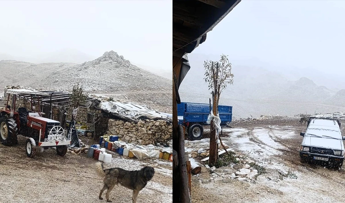 Mersin'de Anamur'un yüksek kesimlerine mevsimin ilk karı düştü