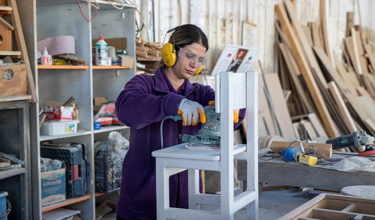 Mersin Büyükşehir Belediyesi Kadın ve Aile Hizmetleri Dairesi Başkanlığı’nda görev yapan Marangoz Ustası Teslime Özdemir, Tarsus Gençlik Kampı Geri Dönüşüm Atölyesi’nde 2020’den bu yana, birimlerin malzemelerini ürettiklerini anlatarak, "Birimlerimizden gelen ürünlerin bakım, onlarım ve tamir işlerini bu atölyede yapıyoruz. Geri dönüşüm atölyemizde birimlerimizin ihtiyacı olan masa, sandalye, dolap ve büro malzemelerinden tutun, akla gelecek her türlü ihtiyacı üretiyoruz. 2020’den 2025 yılına kadar daire başkanlığımıza bağlı 40 birim açıldı. Bu birimlerden 38’inin malzemeleri burada üretildi. Diğer dairelerden gelen talepleri de elimizden geldiğince yerine getirmeye çalışıyoruz" ifadelerini kullandı.