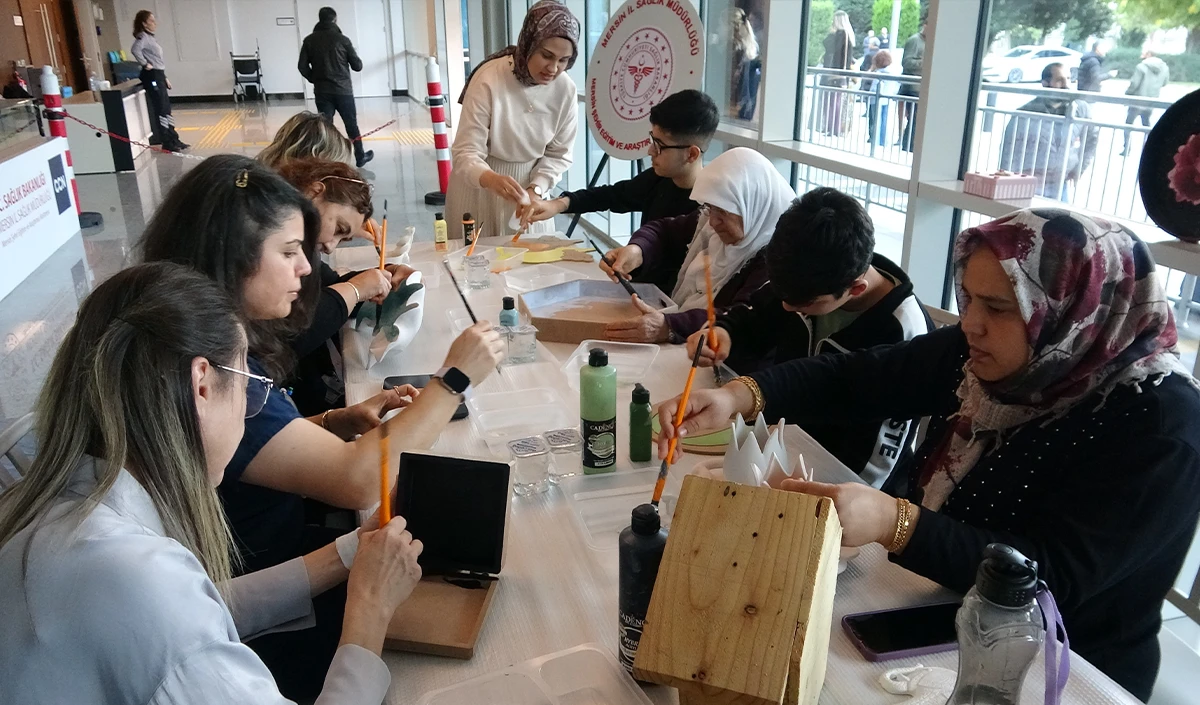 Mersin Şehir Eğitim ve Araştırma Hastanesi'nde hastalar, hasta yakınları ve sağlık çalışanlarına yönelik ‘Teratölye, Seramik ve Ahşap Boyama Etkinliği' düzenlendi.