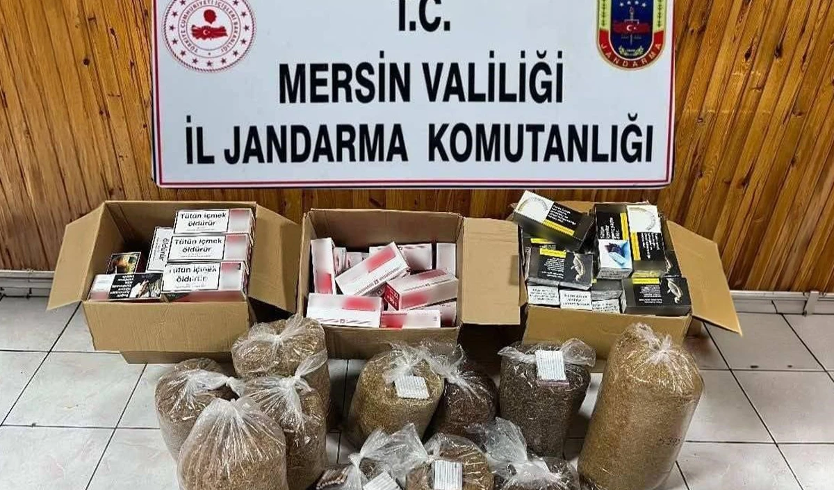 Mersin'de jandarma ekiplerinin düzenlediği operasyonda 2 şüpheli yakalanırken, binlerce makaron ve 40 kilogram kıyılmış tütün ele geçirildi.