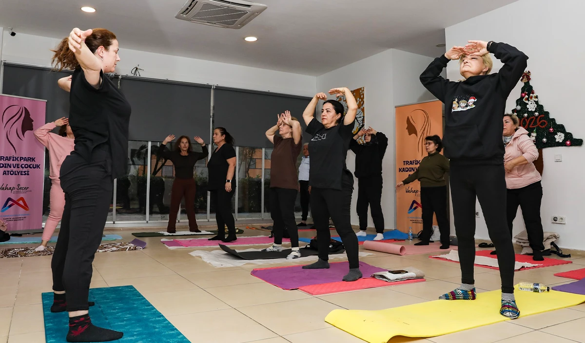 Mersin Büyükşehir Belediyesi Kadın ve Aile Hizmetleri Dairesi Başkanlığı bünyesinde yer alan Trafik Park Kadın ve Çocuk Atölyesinde devam eden ‘Kadınlara Özel Nefes ve Hareket Eğitimi' ile kadınlar; doğru nefes alma tekniklerini, doğru nefes almanın beden ve zihin sağlığı üzerindeki olumlu etkilerini ve hayat enerjisinin bedene yayılmasını keşfeden bir yolculuğa çıkıyor. ‘Matını al gel, nefese ve ana odaklanıyoruz' mottosuyla süren egzersizlere katılan onlarca kadın, çalışmalarla birlikte güne enerjik başlama fırsatı buluyor.
