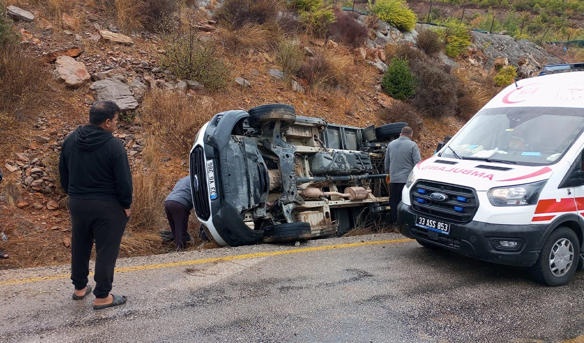 Kaza, ilçeye bağlı Esenpınar Mahallesi Ağlıca mevkiinde meydana geldi. Alınan bilgiye göre, Erdemli istikametine seyreden A.T. yönetimindeki elma yüklü 33 VG 386 plakalı kamyonet, yağışla kayganlaşan yolda sürücüsünün direksiyon hakimiyetini kaybetmesiyle şarampole devrildi. Kazada sürücü ile birlikte araçtaki yolcular S.T. ve H.P. yaralandı. Diğer sürücülerin haber vermesiyle kaza yerine ambulans, itfaiye ve jandarma ekipleri sevk edildi.Yaralılar, ambulanslarla ilçe devlet hastanesi acil servisine kaldırıldı.