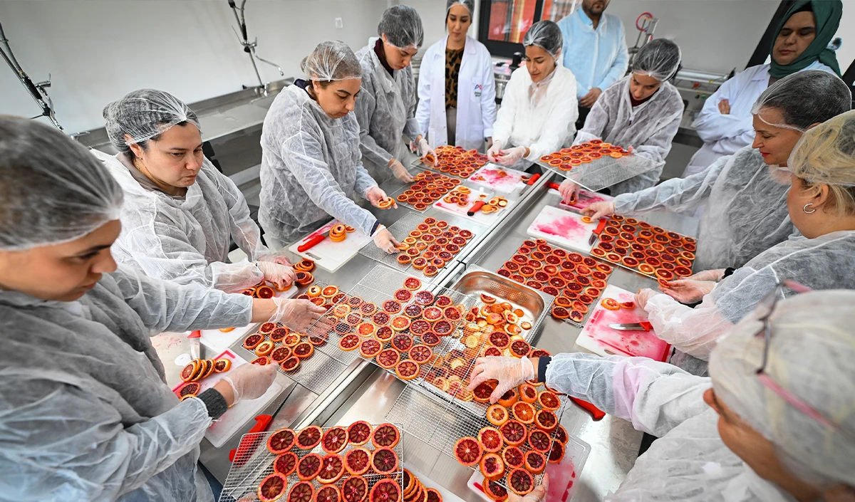 Mersin’de hayata geçirilen ‘Hamzabeyli Köyümüz Atölye’ projesi kapsamında Coğrafi İşaret Tescilli Mersin Kan Portakalı, kadın emeğiyle işlenerek katma değeri yüksek ürüne dönüştürülüyor. Verilen teknik eğitimlerle hem yerel üretim güçleniyor hem de kırsal kalkınmaya katkı sağlanıyor.