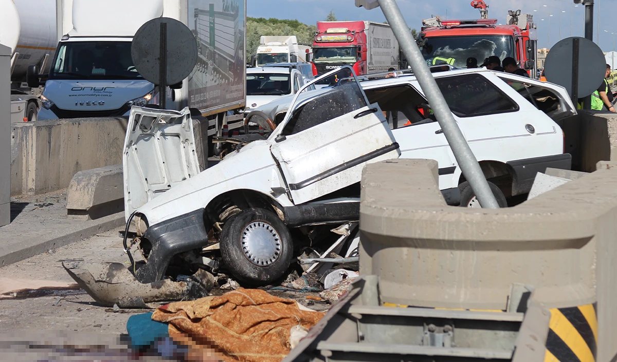 Mersin'de kontrolden çıkarak otoyol gişelerindeki beton bariyere çarpan otomobildeki 1'i kadın 2 kişi hayatını kaybetti.