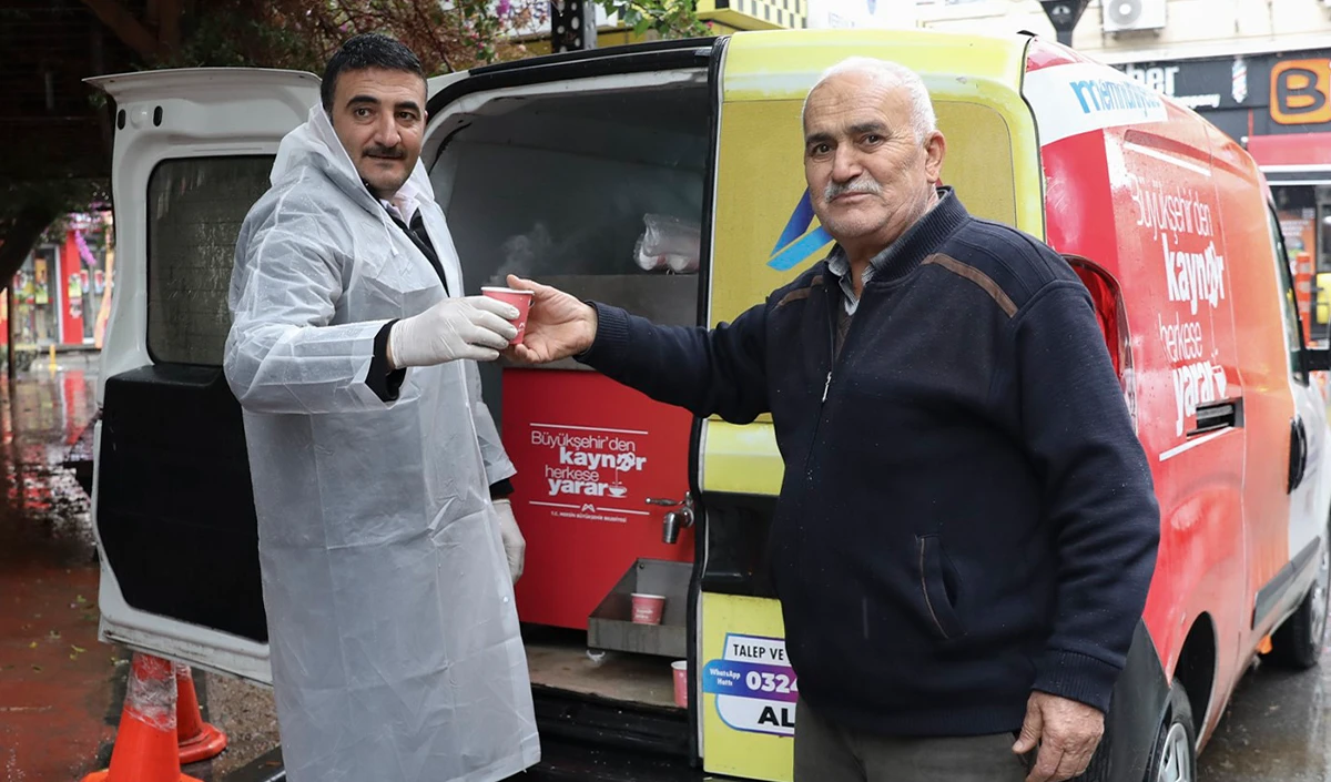 Mersin Büyükşehir Belediyesi, kentin farklı noktalarında dağıttığı geleneksel kaynar ikramıyla soğuk havada vatandaşların içini ısıttı.