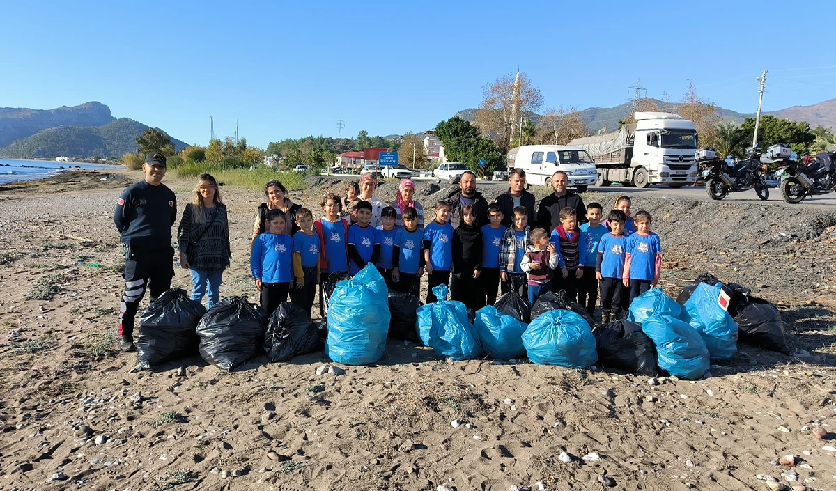 Mersin’in Bozyazı ilçesinde öğrenciler, öğretmenler, veliler ve jandarmanın katılımıyla sahil temizliği gerçekleştirdi.