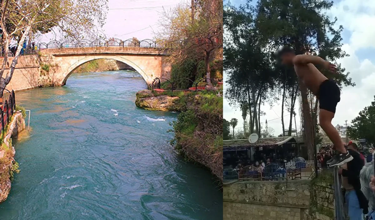 Mersin'in Tarsus ilçesinde şelale üzerindeki köprü korkuluklarından suya atlayan kişiye, polis ekiplerince idari para cezası uygulandı.
