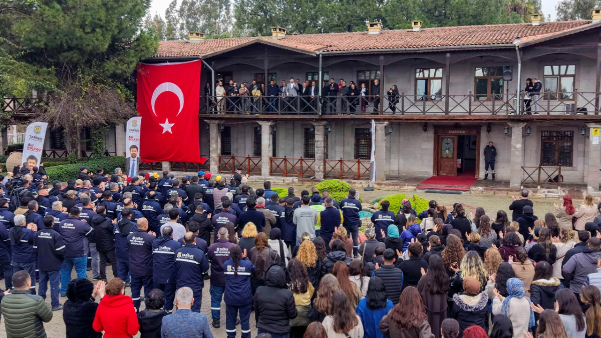 Tarsus Belediye Başkanı Ali Boltaç, başkanlık binası önünde belediye personeline hitap ederek belediyenin mali yapısından personel haklarına, maaş düzenlemelerinden yeni araç yatırımlarına kadar birçok başlıkta açıklamalarda bulundu. Kendisini çalışanlardan farklı görmediğini vurgulayarak konuşmasına başlayan Başkan Boltaç, "Sizin efendiniz değilim. Sizinle beraber bu memleketin hizmetkarıyım ve hizmetkar olmaya devam edeceğim" ifadelerini kullandı.
