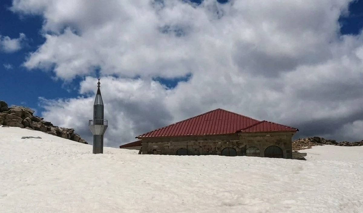 Toroslar’ın zirvesinde 741 yıllık cami kar altında kaldı